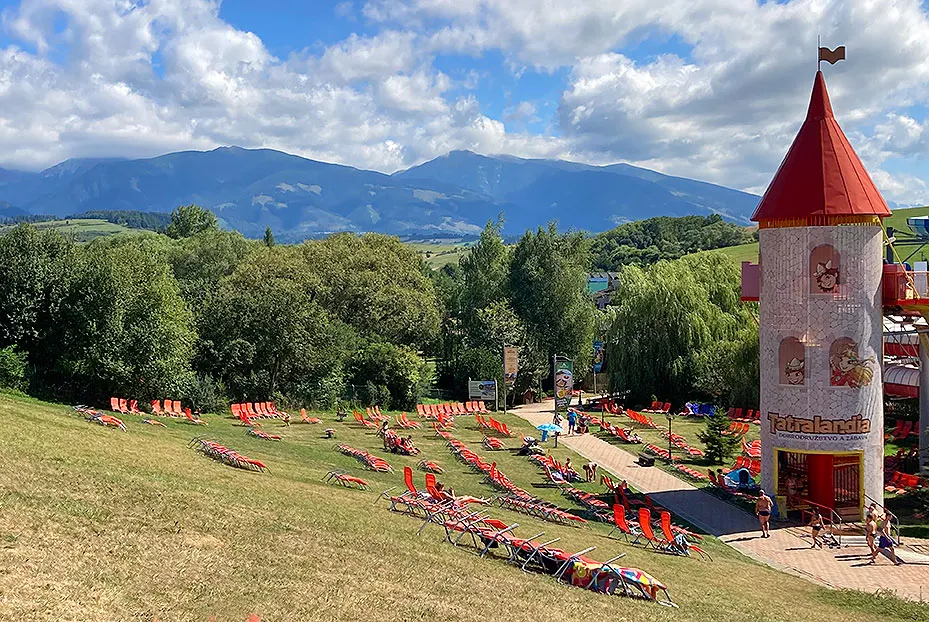 También elegimos Liptovský Mikuláš porque aquí se encuentra el parque acuático Tatralandia, en el que pasamos un día entero y que os recomendamos visitar, sobre todo si vais con niños. La entrada cuesta 33 euros, pero vale la pena porque es uno de los parques acuáticos más grandes de centroeuropa y está en un paraje idílico con las montañas de los Tatras de fondo. En Tatralandia hay muchas piscinas y toboganes de todo tipo, con distintos niveles de dificultad en función de la adrenalina que quieras quemar. Tiene zonas cubiertas y al aire libre. Dentro del parque hay taquillas para dejar la ropa y varios restaurantes.